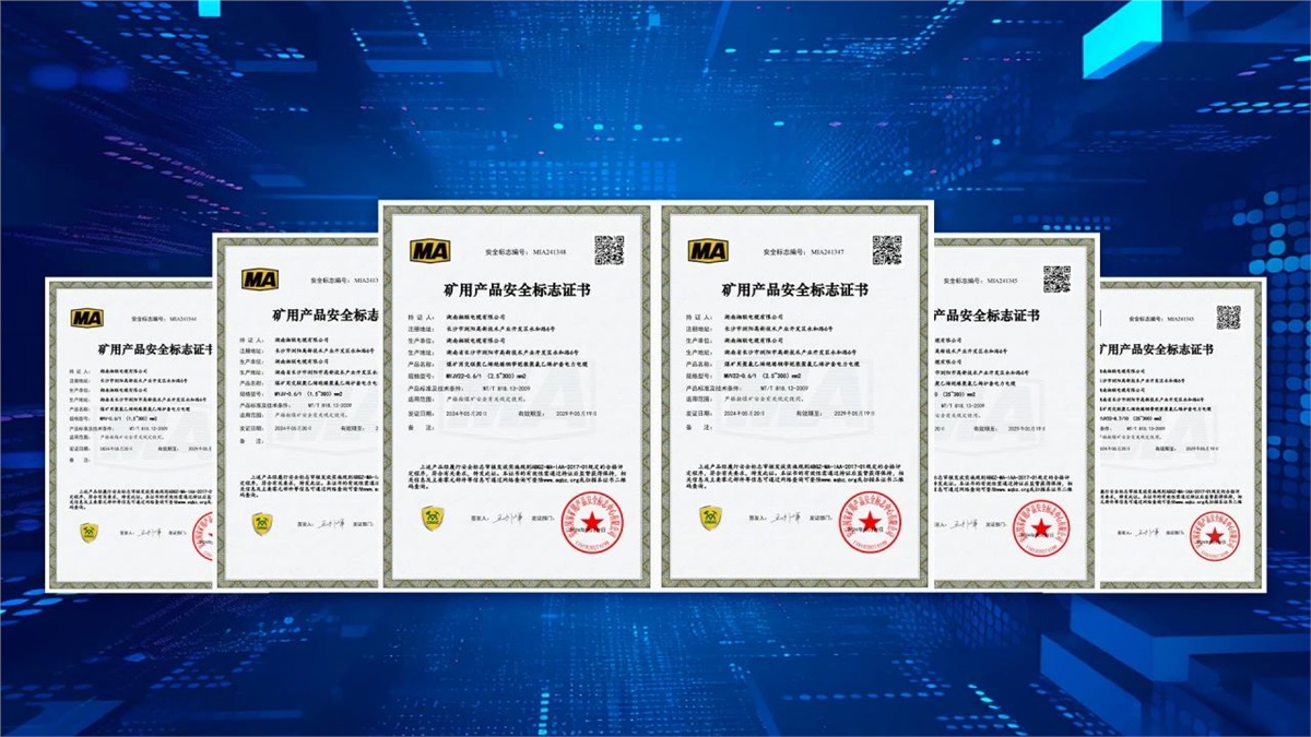 5月,湖南湘聯(lián)電纜有限公司成功取得安標(biāo)國家礦用產(chǎn)品安全標(biāo)志中心頒發(fā)MVV-0.6/1(1.5~300)mm2煤礦用聚氯乙烯絕緣聚氯乙烯護(hù)套電力電纜、MYJV-8.7/10(25~300)mm2煤礦用交聯(lián)聚乙烯絕緣聚氯乙烯護(hù)套電力電纜等六個(gè)產(chǎn)品的礦用產(chǎn)品安全標(biāo)志證書。