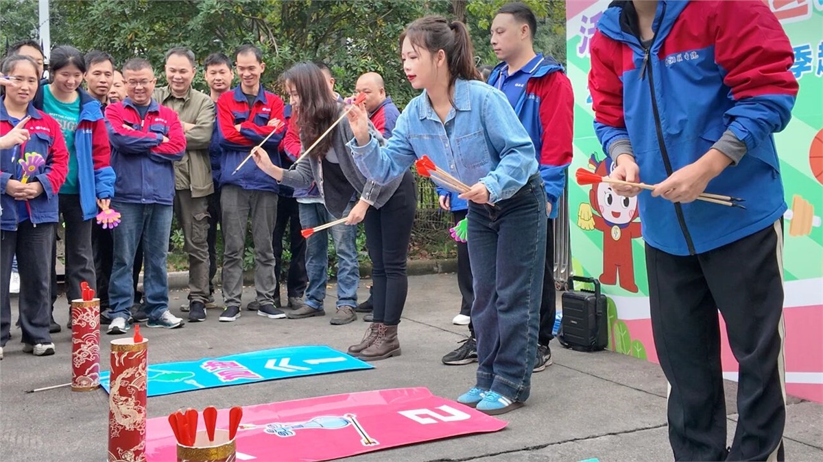 個人項目環(huán)節(jié)同樣精彩紛呈。“321請回答”猜歌游戲中,每當旋律響起,參賽者們便凝神細聽,快速反應(yīng),搶占答題擂臺,現(xiàn)場熱鬧非凡;投壺項目中,大家全神貫注,盡顯專注與沉穩(wěn),感受傳統(tǒng)運動的魅力;“公雞下蛋”項目更是引得全場笑聲不斷,成為當天最受歡迎的項目之一。