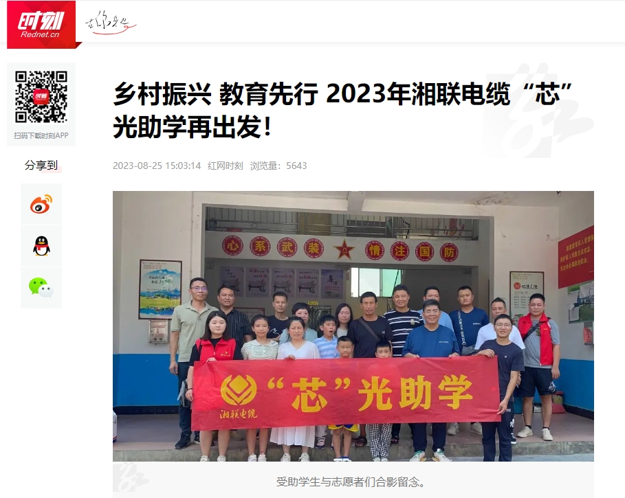 2023年,為增強員工的思想道德建設,湘聯電纜有序開展公益助學、懷念袁隆平院士、關愛老人等活動,多次被瀟湘晨報、湖北新聞、紅網、澎湃新聞等知名媒體推薦報道。